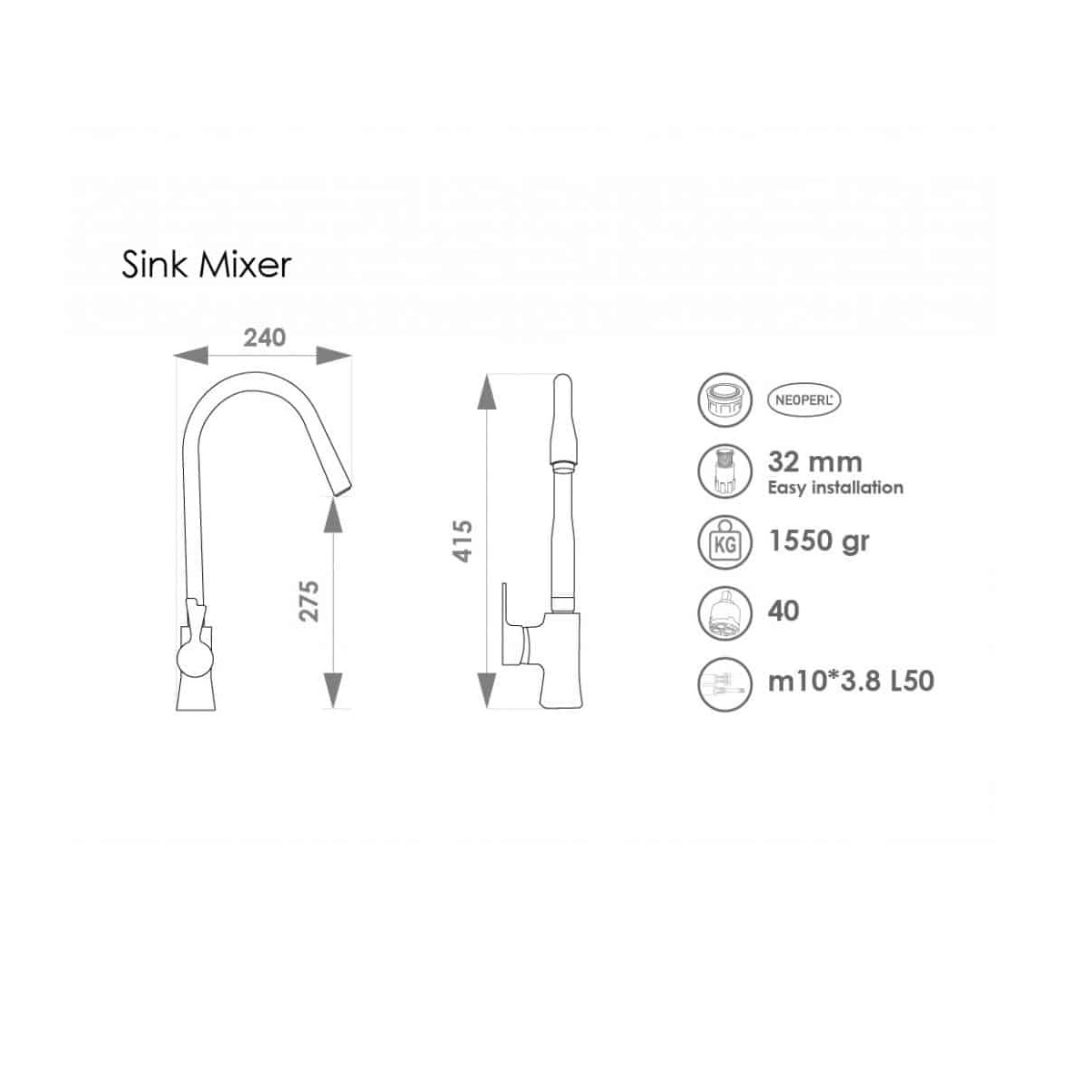 شیر ظرفشویی راسان مدل تیتانیوم کروم